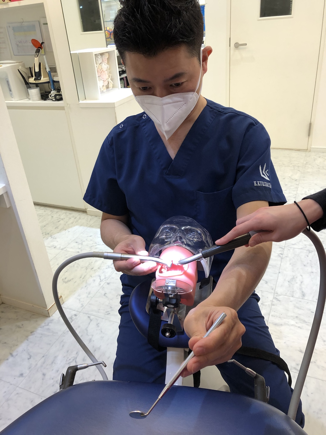 【感想】 今回の勉強会では 診療姿勢と、姿勢を崩さないためのミラーテクニックの基礎を学びました。 この先、身体を壊さずに歯科医師・歯科衛生士を続けていくには、身体の負担にならない正しい姿勢で診療していく重要性を再認識しました。 ミラーテクニックについては“タービンの切削水で濡れて見えない”“曇ってしまう”“傾いてしまって見たいところが見えない”などの問題点を解決するためのテクニックについてレクチャーしていただきました。 ・ミラーはタービンの裏に置く ・ミラーをなるべく遠ざける ・4つのVIEWを使い分ける ・精密作業に適した姿勢で診療する 実習の時間も設けていただき、実際口腔内においてはどういう見え方になるのかを体験でき、次の日の診療から実践しやすく良い学びの時間となりました。     image-5image-4image   歯科衛生士勉強会担当:森 明子