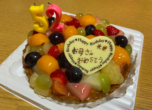 サプライズでフルーツタルトを買ってあげました。 フルーツたくさんで美味しかったです☆   余談ですが、母親は24歳で姉を、28歳で私を産んだのですが 今年が丁度、私が24で姉が28の代なのです。 時代の違いはあると思いますが、 「自分の歳で結婚や出産をした母は凄いね…」と 姉と改めて母に感謝と尊敬の気持ちを2人で話をしました。   今年の夏は実家に帰って、自分の部屋の整理整頓など できたらいいなと思うので、夏に向けて仕事頑張りたいと思います。   ではでは、また( ・∇・)ノ  ]]>