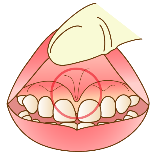 また、注意点として、上の唇・下の唇の真ん中には「小帯」といってひだがあります。