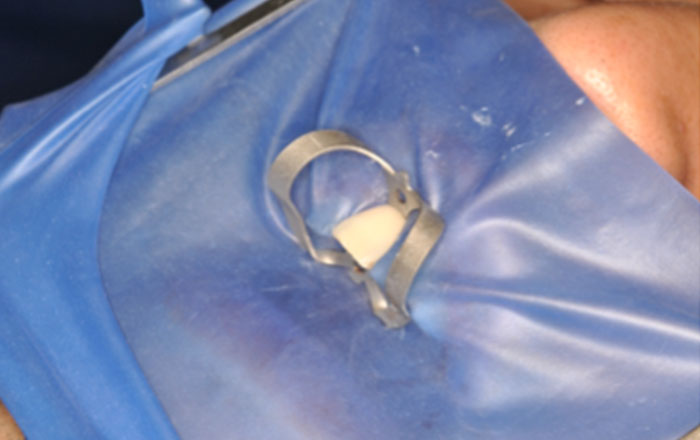 根管治療を始める前には必ず『ラバーダム防湿』を当院では行っています。