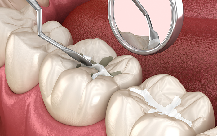 奥歯の溝は、複雑な形をしているので虫歯になってしまうことがありますが、シーラントで奥歯の溝を塞ぐことにより、虫歯を防ぎます。