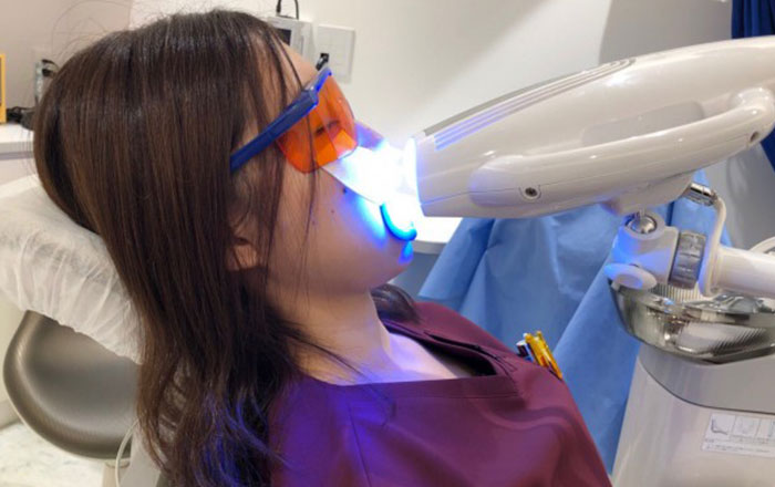ホワイトニングジェルの塗布と光照射(10~15分)を1セットとし、これを3回繰り返します。