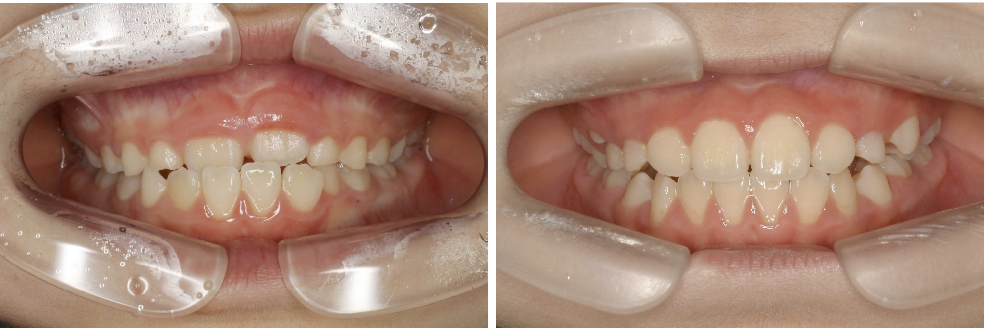 しかし、小児矯正後は上の前歯が下の前歯を乗り越え、理想的な位置に移動しています。