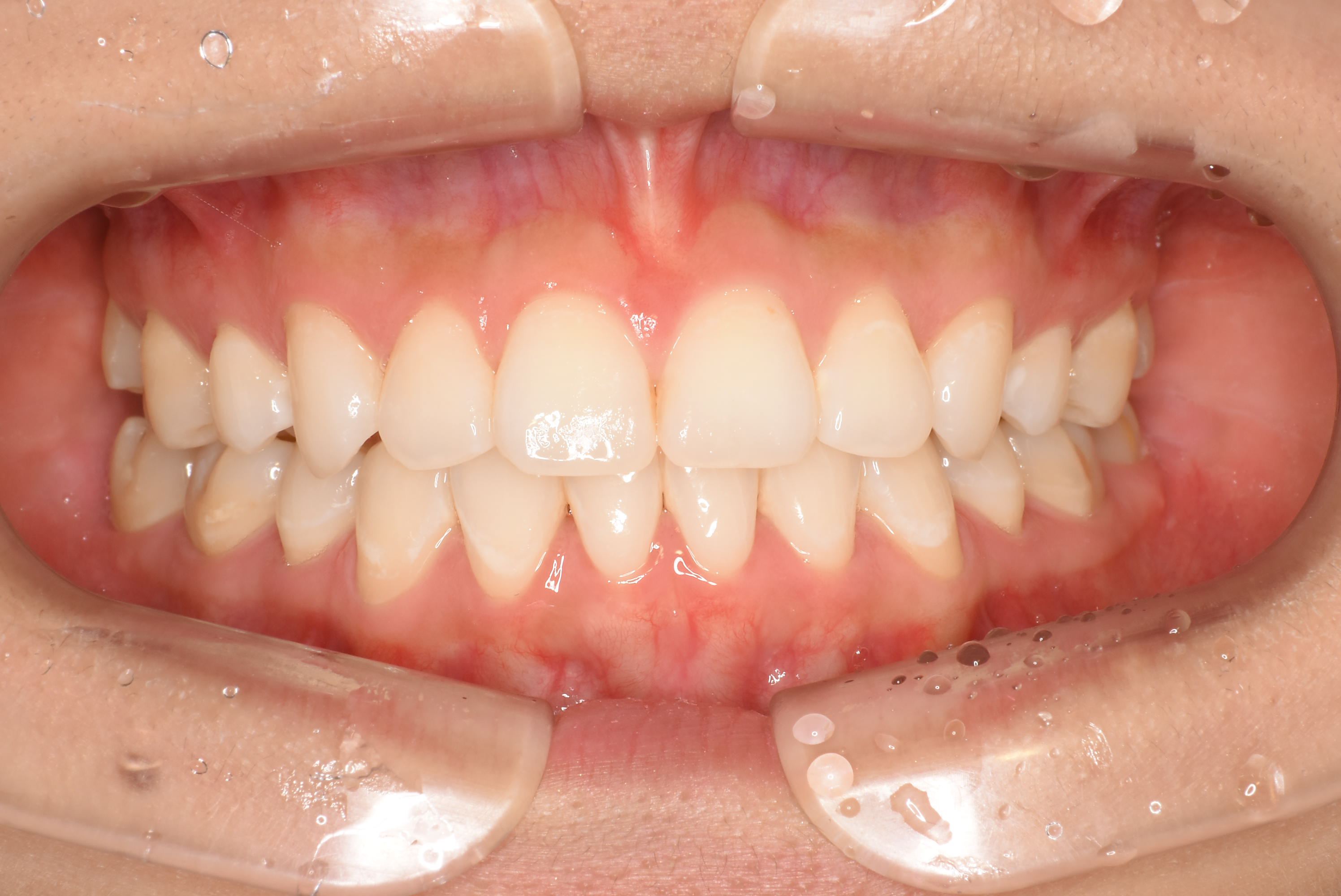どこか1点に力がかかりすぎて、将来的に歯が割れてくるリスクがあること、たまに頬の粘膜を、上の歯と下の歯の隙間に噛み込んでしまい、口内炎ができてしまっていたので、そこを治すためにマウスピース矯正(インビザライン)で再矯正を決断しました。