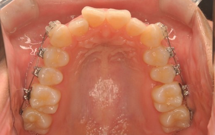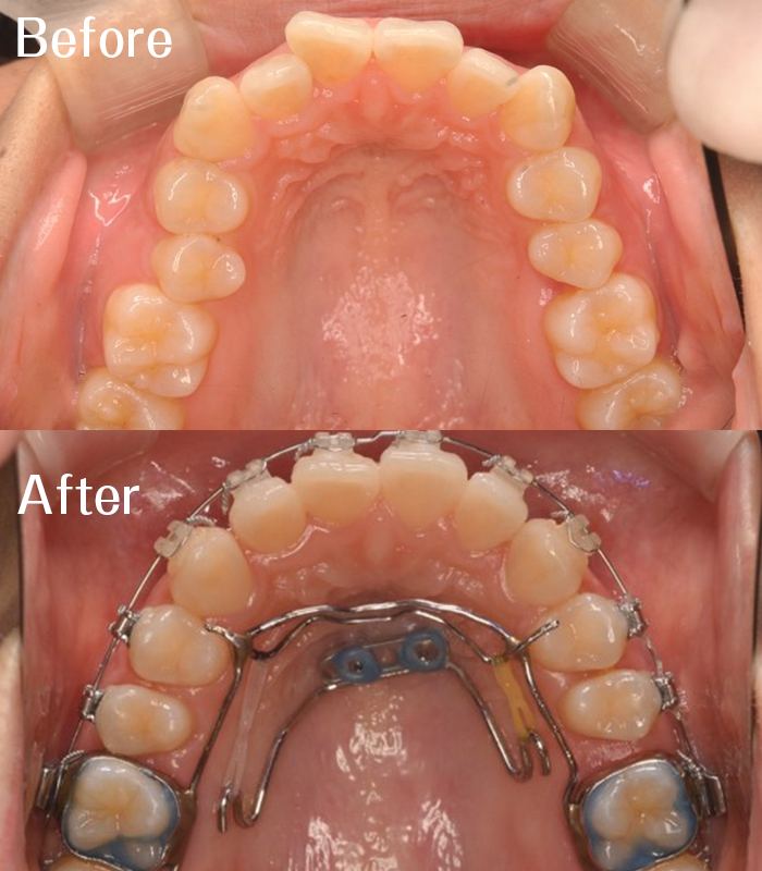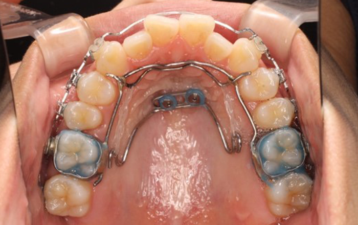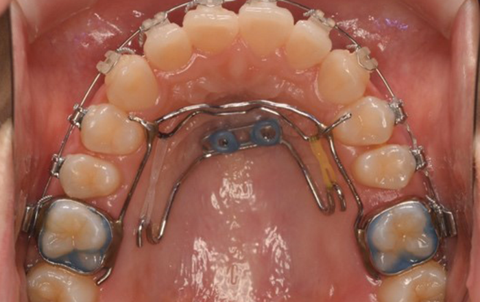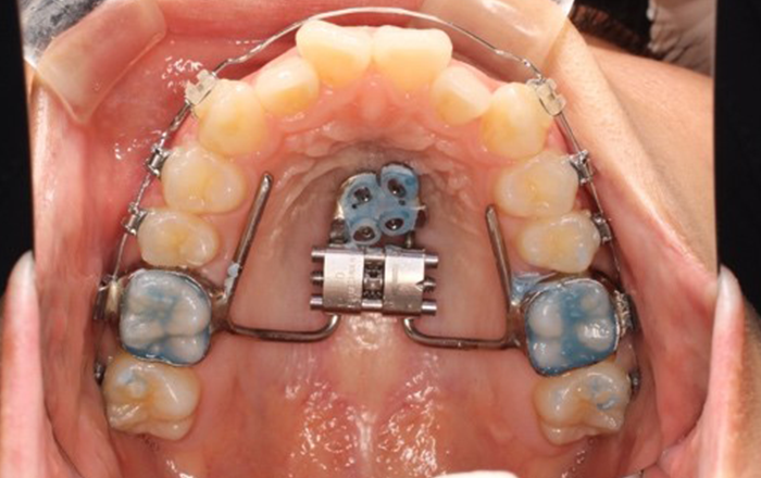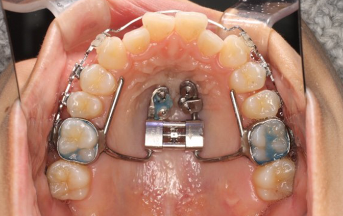 少しずつ歯が並んできたところで本格的な上顎の拡大を行いました。 この装置が「ハイブリットハイラックス」です。