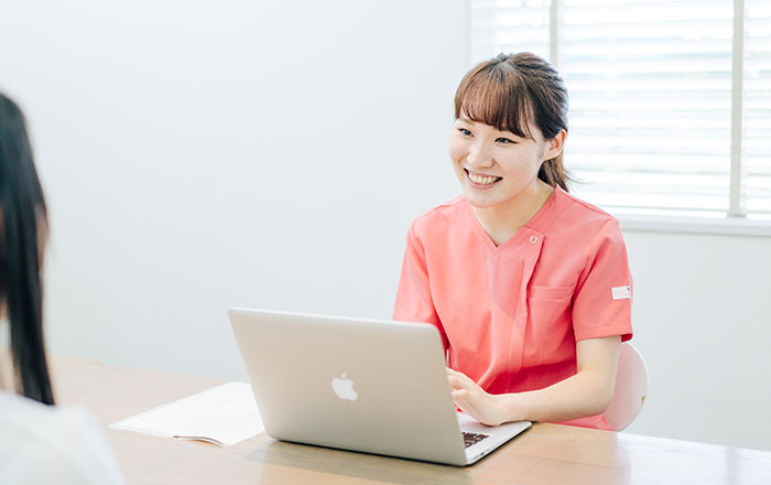 栗林歯科医院では患者様、一人ひとりに合った最適な治療計画をたてるため、問診票にご記入いただいた後、現状を把握して治療のご希望を伺うところからスタートします。