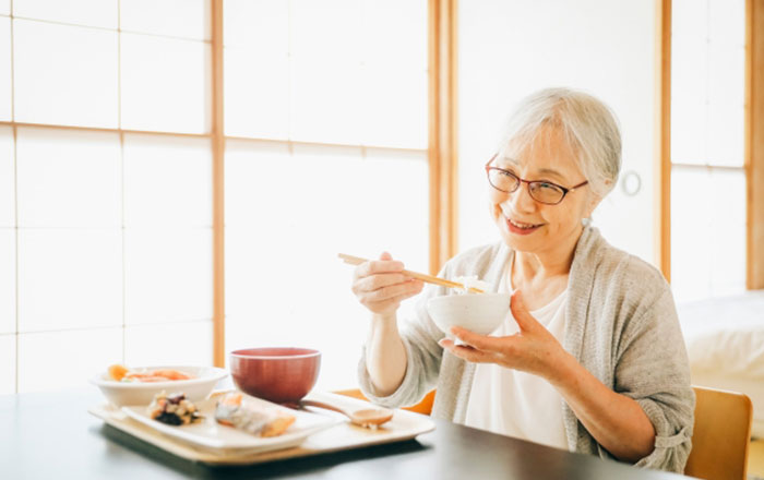 入れ歯を入れることで、今まで噛めなかったものが噛めるようになり、食べ物も固形物が食べられるようになります。