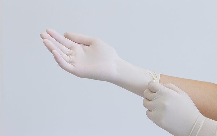 患者様がラテックスアレルギーの場合は、ラテックス素材ではない、別のグローブを使用しています。