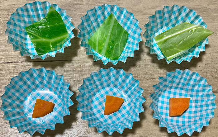 ②茹で野菜(2分・5分)と生野菜で噛む回数はどれくらい変わる?