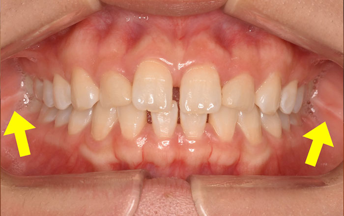 不安・緊張などの精神的ストレスなどで、無意識に歯ぎしりや噛みしめをすることで、歯が頬にあたり白い線ができてしまうことです。