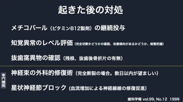 他には、神経管と親知らずが接しているような場合に起きます。