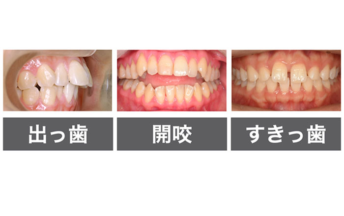上顎前突(出っ歯)・開咬・すきっ歯という歯並びの状態になることがあります。