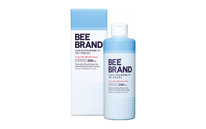 当院では、むし歯予防には、フッ化物(フッ素)入りの洗口剤BEE BRANDをおすすめしています。