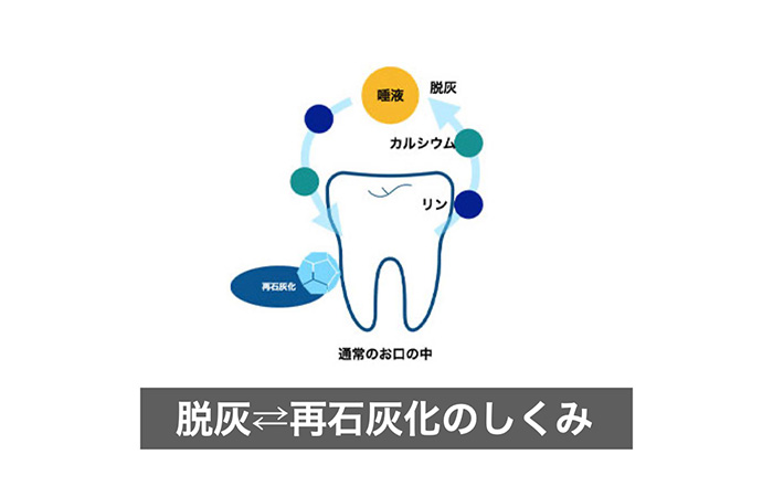 中性に戻ることで、唾液中のカルシウムが歯に取り込まれる再石灰化の現象が起き、歯が溶けて脆い状態から元に戻ります。