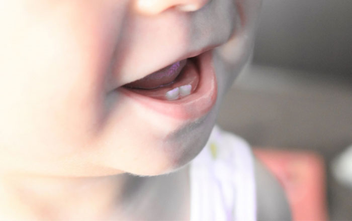 赤ちゃんが生まれてから「生後4ヶ月〜1歳4ヶ月」の間に、下の前歯(乳歯)が生えてきます。