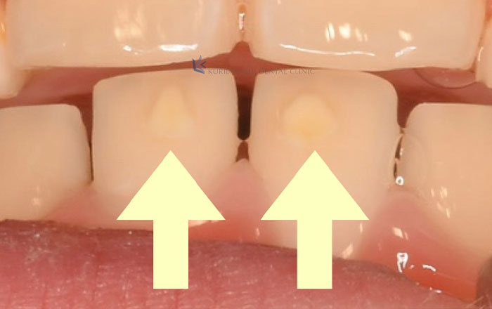 エナメル質形成不全の場所はむし歯になりやすい上に、むし歯になってしまうと進行も早いので、より一層注意が必要です。