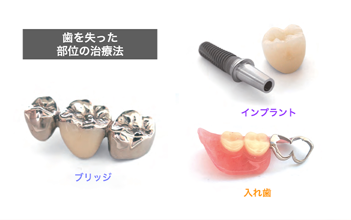 もし歯を失えば、インプラント・ブリッジ・入れ歯の治療をせざるを得ない状況になります。