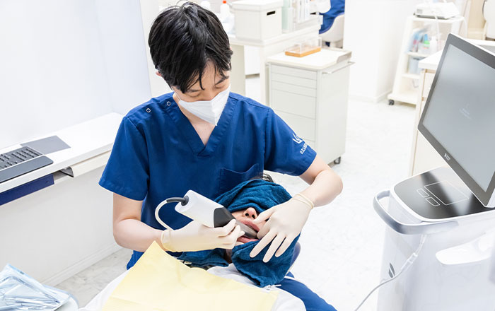 従来の、ガムのような素材で型取りを行うのではなく、スキャンを行なって型取りをします。