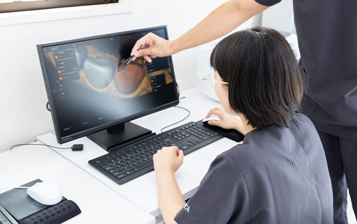 歯科技工士が、PC上で詰め物・被せ物の設計を行います。