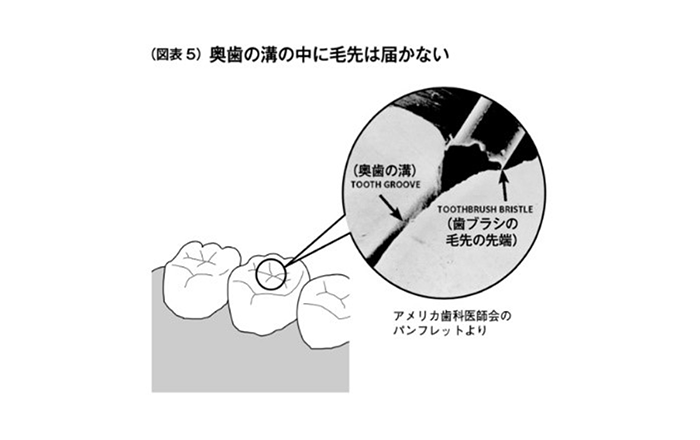 図にあるように、歯ブラシの太さよりも、歯の溝ははるかに細かいことが分かります。