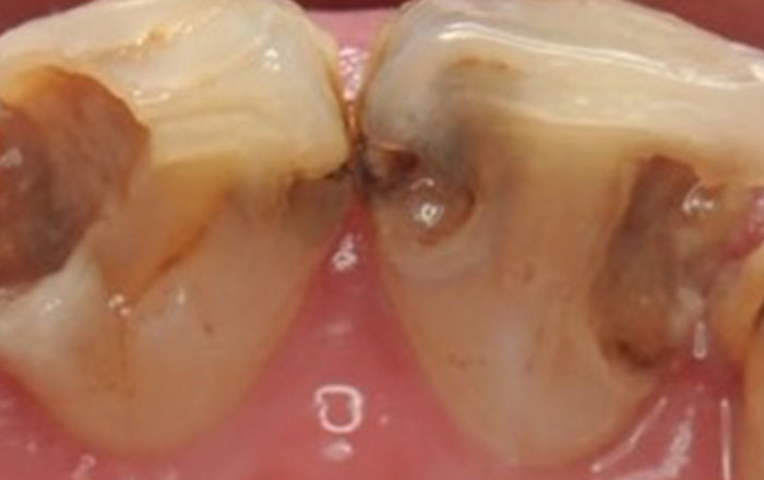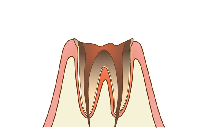 C3のむし歯は、歯髄という、歯の神経にまで達したむし歯です。歯根膜に炎症が起こって大きな穴が空き、何もしなくてもズキズキと痛みます。