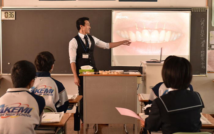 先日、明海中学校職業講演会にアシスタントとして参加させて頂きました。講演時の様子を皆様にお届けしたいと思います!