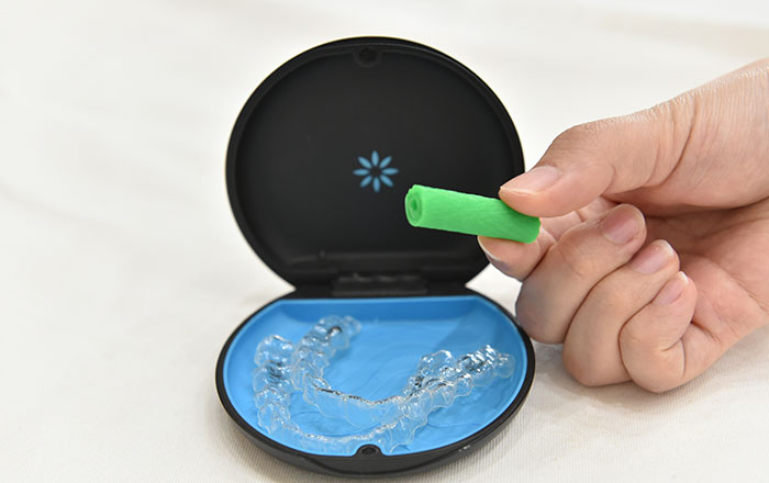 マウスピース矯正中を計画通りに進めるため、必ずアライナーチューイを使いましょう。