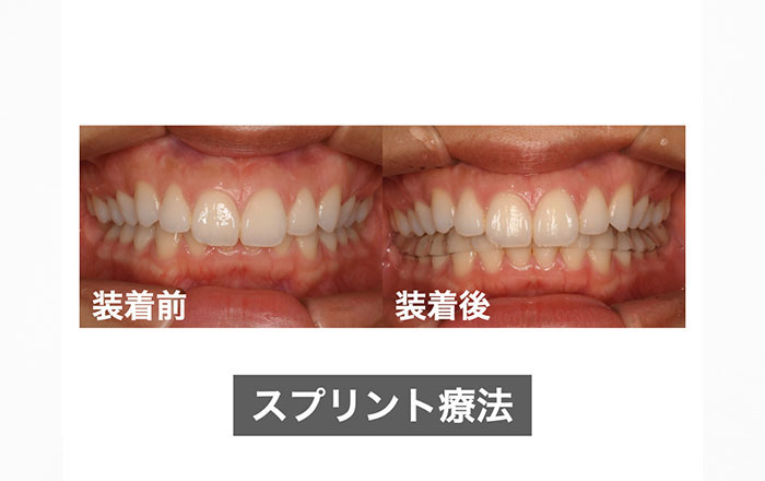 スプリントをつけることによって、顎に負荷をかけないよう保護し、歯への直接的な負担を軽減します。