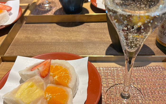 美味しかったものは、ひがし茶屋街のフルーツ大福とのどくろのお寿司です!!!