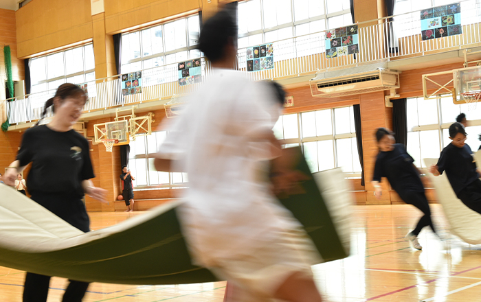 最後は雑巾リレーで体育館をきれいにして終了!