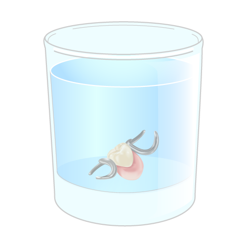 綺麗に洗った入れ歯は水や義歯洗浄剤につけて保管して下さい。