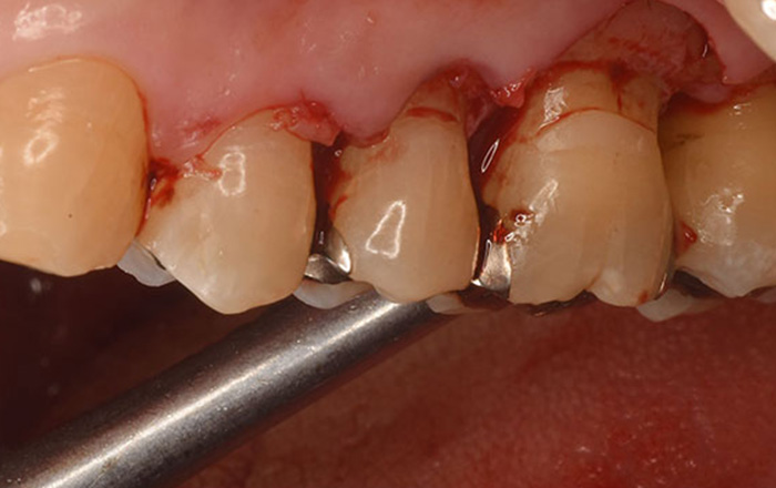 症状の改善が認められなかった箇所に、歯周外科処置を行います。