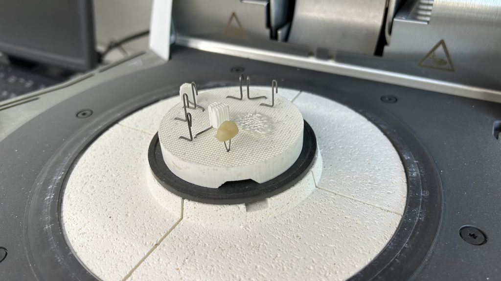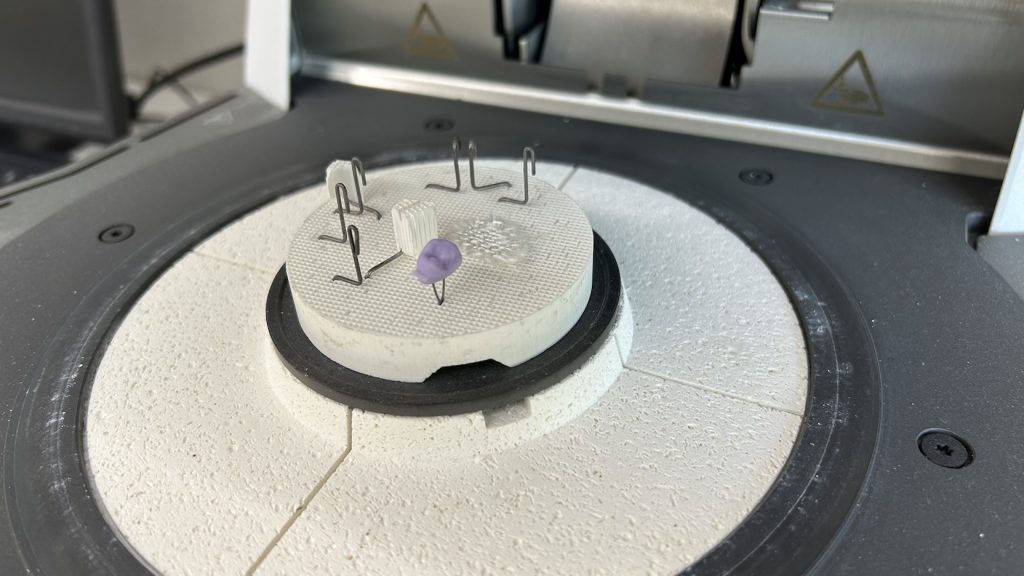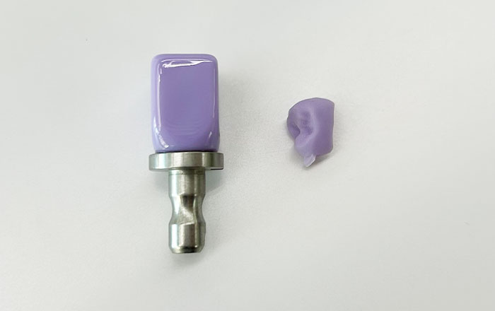 紫色のままだと口の中に入れることは出来ないので、クリスタライゼーションを行い歯の色にします。