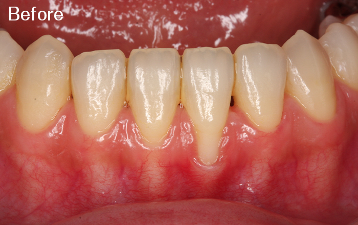 ・上顎の歯茎を一部移植することで下がった歯茎を修正し、見た目や症状を回復することができます。