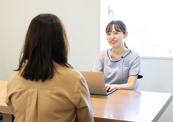 問診票にご記入いただいた情報をもとに、トリートメントコーディネーターによるカウンセリングを行います。プライバシーに配慮した個室でのカウンセリングは、医師には言いづらい治療に関する不安や疑問点、痛みについてなど細やかに、丁寧に伺います。また患者様のライフスタイルについても伺い、日常生活での予防などアドバイスに役立てていきます。