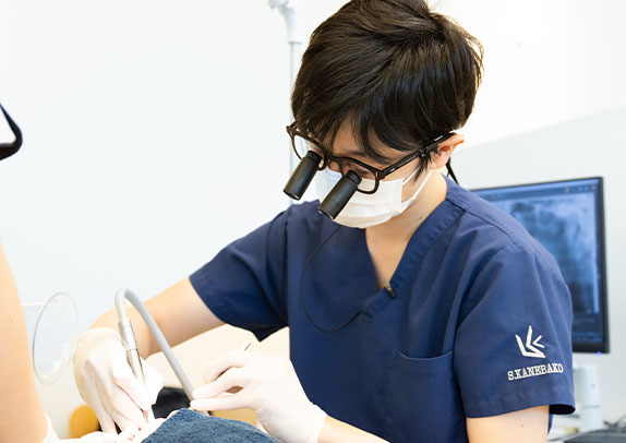患者様の口腔内の症状、過去の治療について、また今後の治療方針の希望などをヒアリングした後、必要十分な検査を行い、的確な診断の下、治療計画をたて、実行していけるよう担当スタッフ全員で取り組んでいきます。