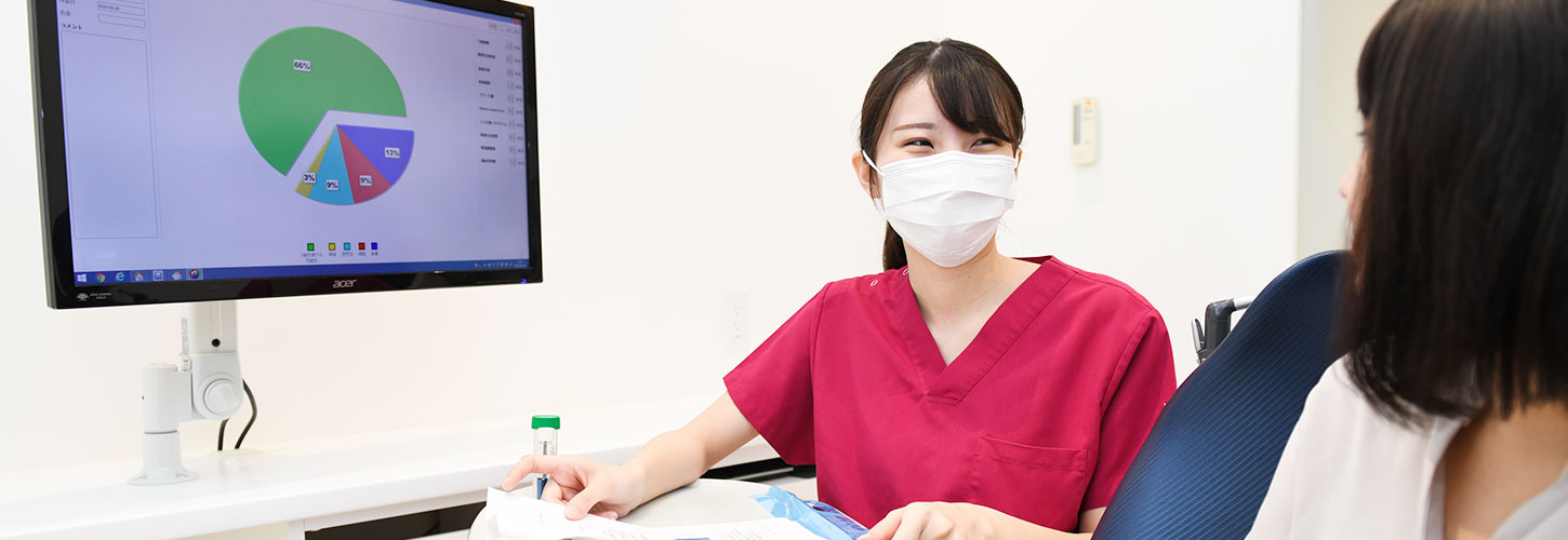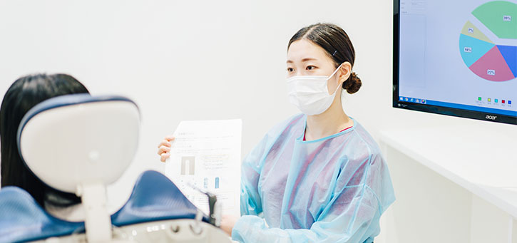唾液検査など今まで行った検査結果の説明と、その結果をもとに立てた今後の予防プランの説明をします。さらに、歯みがき指導と歯科衛生士による口腔清掃も行います。検査結果については、詳しくレポートにまとめたものをお渡ししています。