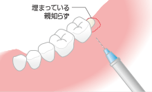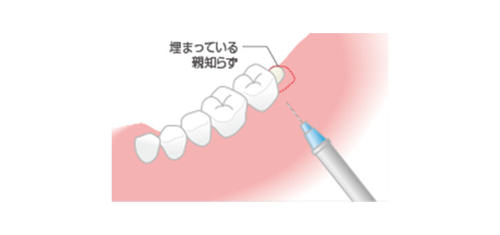 親知らずの抜歯の最初のステップは、表面麻酔や細い針を使い、極力痛みの少ない麻酔を行います。