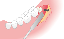 専用のメスを使って歯茎を切り開きます。