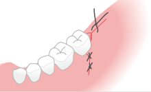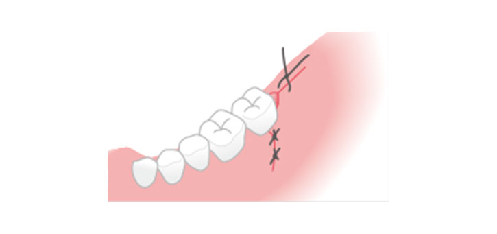 切開した歯茎をきれいに縫い合わせます。※翌日の消毒と、1週間後の抜糸が必要です。