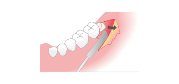 親知らずの該当箇所を歯科口腔外科専用のメスを使って、歯茎を切り開きます。