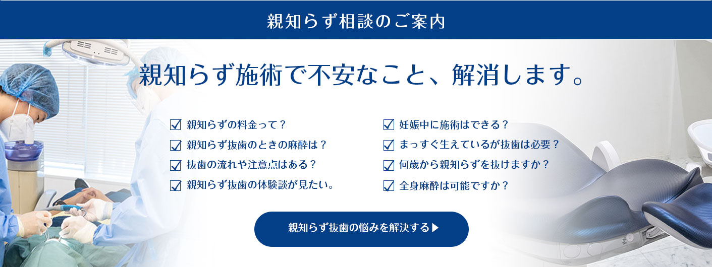 親知らずを抜歯するには技術が必要です。抜歯にはリスク(血が止まらなくなる、痛みが伴う、腫れが伴う)があります。