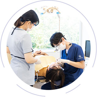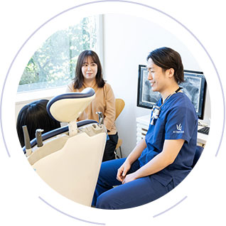 当医院が大切にしていることは患者様の未来までを見据え、お口全体に対して最善の治療や予防ケアを継続してご提供することです。患者様一人ひとりに合った最適な治療計画をたてるため、丁寧なカウンセリングからスタート。専門医による診査・診断に基づき、患者様一人ひとりに最適な治療をご提案しています。たんに病気を治すことをゴールとするのではなく、なぜ病気になったのか原因をしっかり見つめ、お口全体の健康を考えた治療と、再発をさせない予防に取り組んでいます。