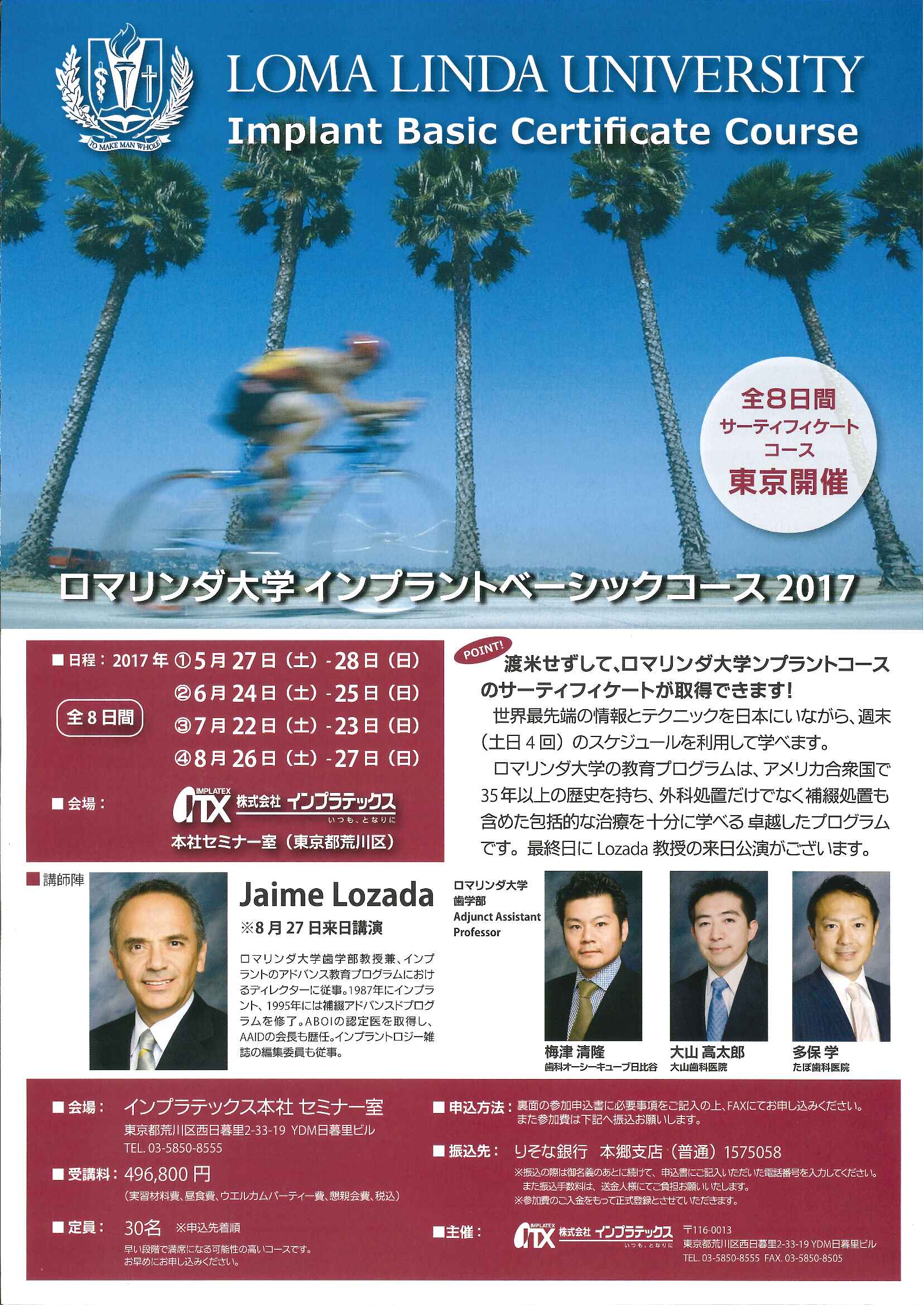~ロマリンダ大学 インプラントベーシックコース2017~開催のお知らせ【 多保先生 】 2017.04.12 医院ニュース インプラント専門医 歯周病専門医 口腔外科専門医 として、活躍されています。 専門医とは… http://kuribayashi-dc.com/service/tips-02.html セミナーに興味がある歯科医師の方はスタッフにお声かけください。]]> 散歩 前の記事 歯科衛生士【4/14】 次の記事