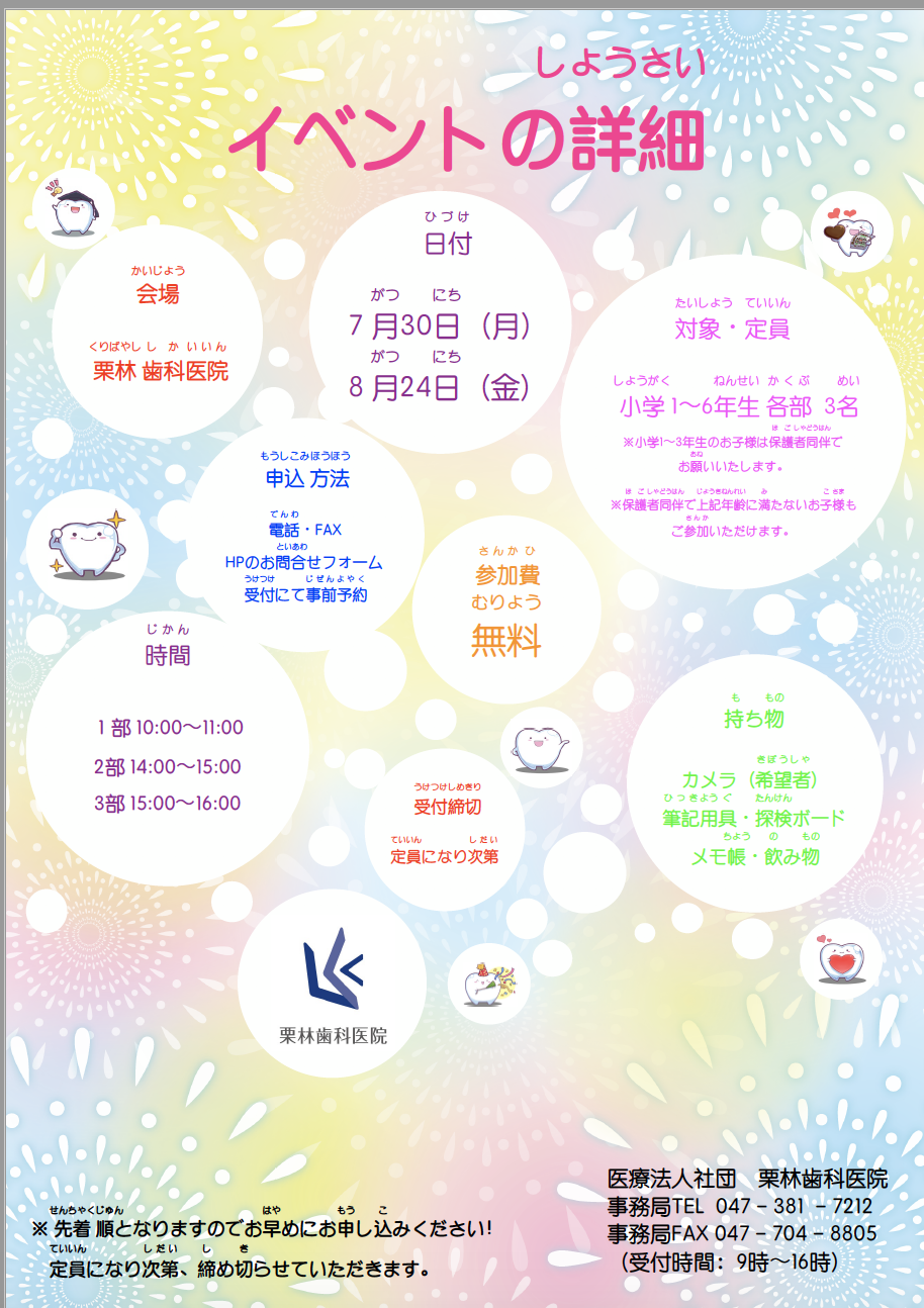 ◆毎年恒例!夏休みイベント(7月30日・8月24日)開催します◆