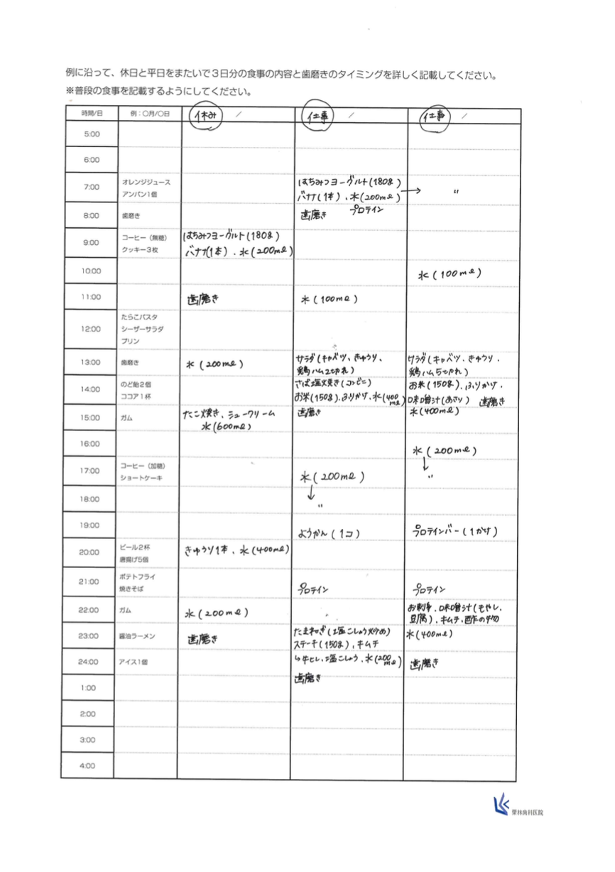 患者様に3日間のお食事アンケートを書いてきていただき、