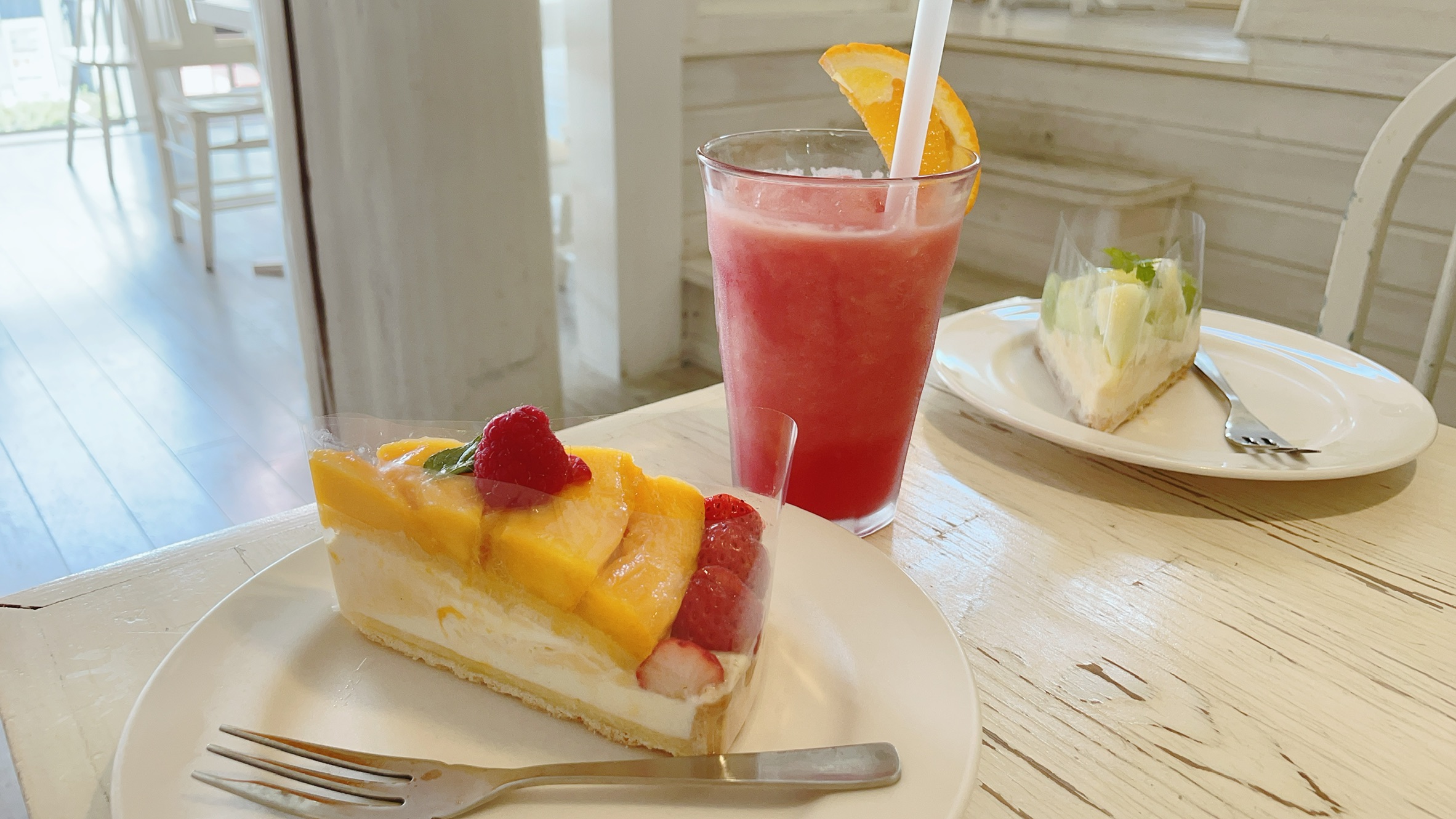白を基調とした店内もとても可愛らしく、タルトやスイカジュース、フルーツサラダも最高に美味しかったです。