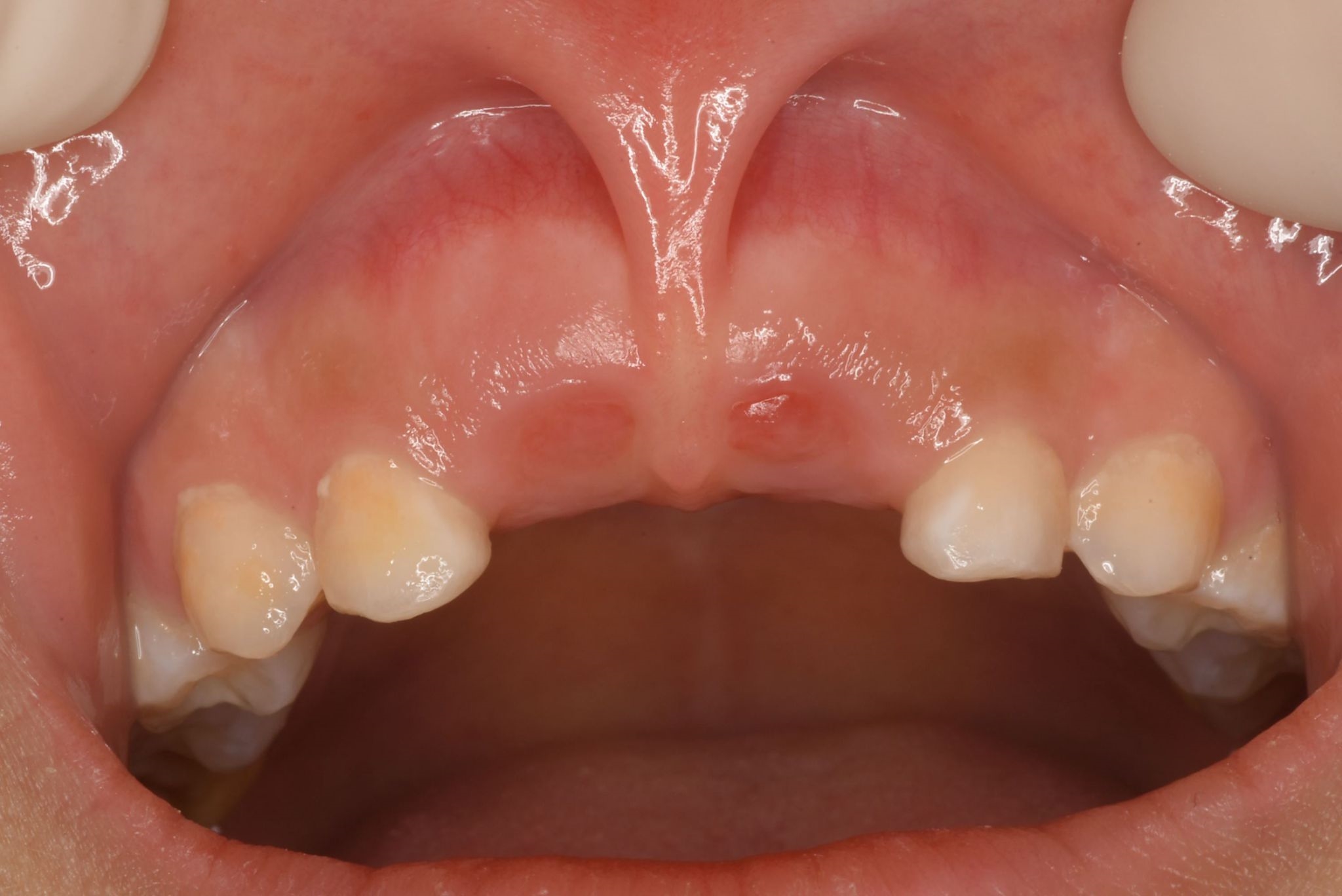 しかし、下の写真のような上唇小帯と呼ばれるヒダが、歯の並ぶスペースに大きく伸びていると、注意が必要です。