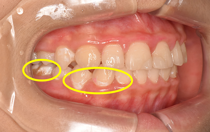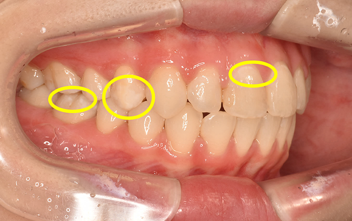 エナメル質形成不全の場所は虫歯にもなりやすい上に、虫歯の進行も早いです。