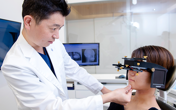 現在の顎の位置と動き方、顎関節の症状を確認するために検査します。